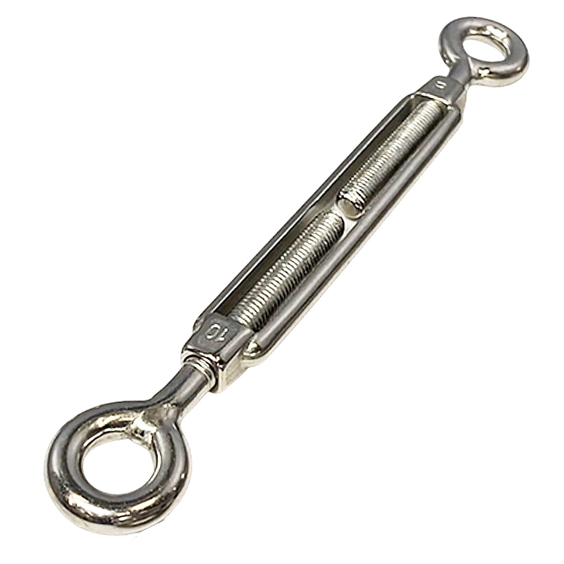 Талреп изготавливается из коррозиестойкой нержавеющей стали марки А4. Рабочие нагрузки рассчитываются вдоль оси талрепа, боковые нагрузки не допускаются. Высоколегированный сплав повышает прочностные характеристики изделия. Длина корпуса 126 мм. Диаметр кольца 12 мм.