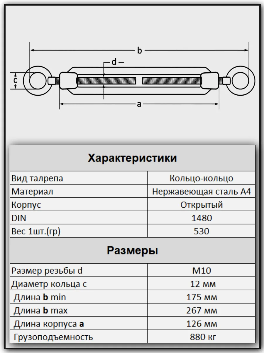 Талреп кольцо-кольцо нержавеющий А4 М10 DIN1480, 2 шт.
