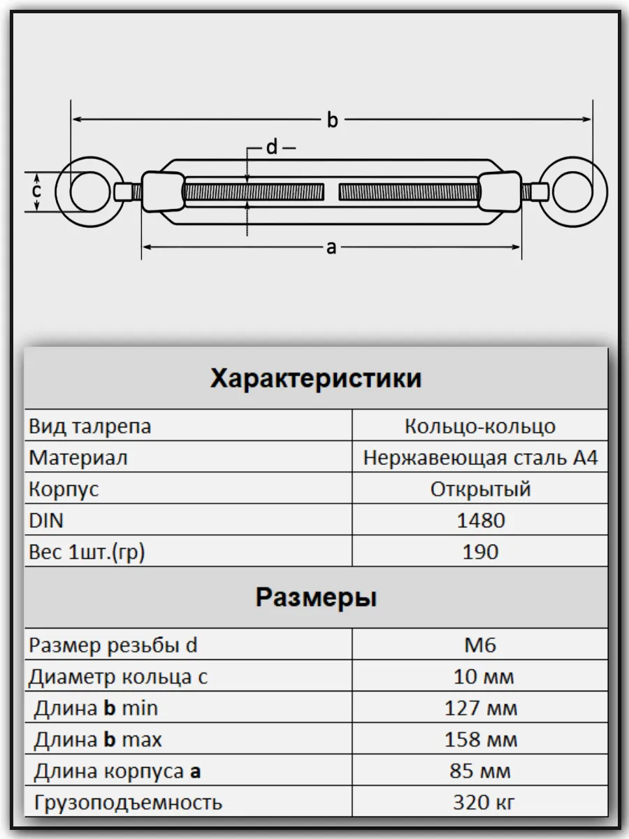 | Талреп кольцо-кольцо нержавеющий А4 М6 DIN1480, 4 шт. | A4BJ50600091A07ф4 | 1 шт. |