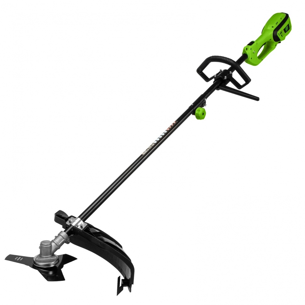 Электрический триммер Сибртех ЭК-1200 96632 мощностью 1200 Вт, с разборной штангой, предназначен для стрижки газона с помощью катушки с шириной скашивания 380 мм, а входящий в комплект режущий диск позволяет избавляться от сорняков, растительности с толстыми стеблями, а также срезать мелкий кустарник. Триммер пригодится в местах недоступных для колесной газонокосилки: между грядками, вдоль стен, заборов и тротуаров. С ним легко справится даже неопытный пользователь, т. к. он прост в применении и не нуждается в техническом обслуживании.