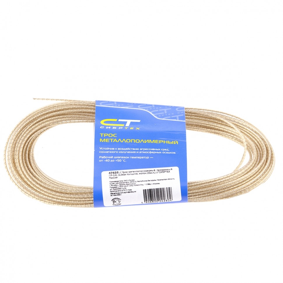Трос металлополимерный зелен.ПР-2,5 (толщ.2,5мм, кат 20м.п.) Сибртех
