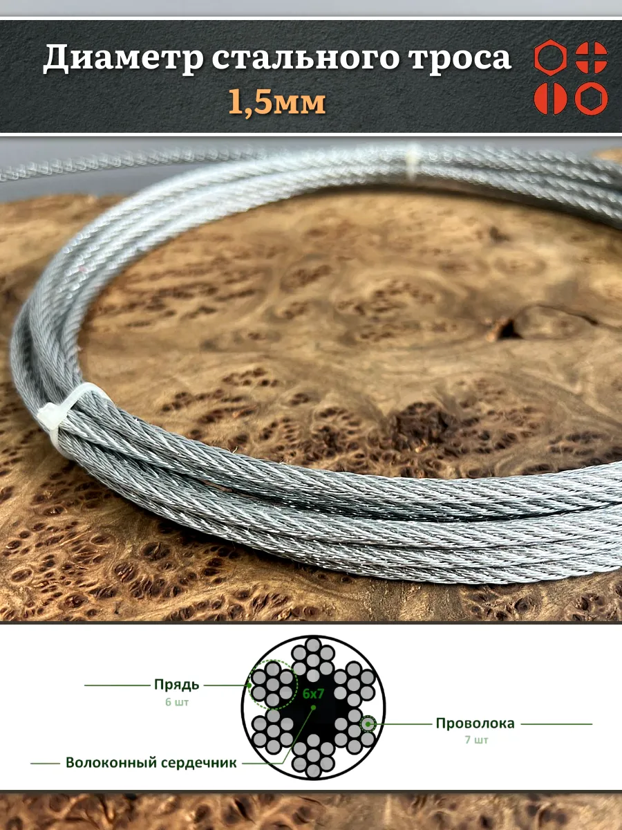 Трос стальной d1,5 ОЦ без оплетки, 40 метров