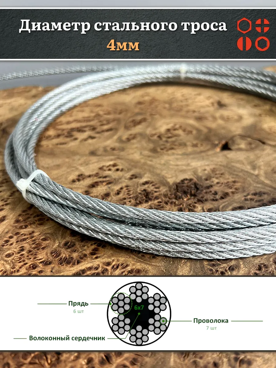 Трос стальной d4 ОЦ без оплетки, 20 м.