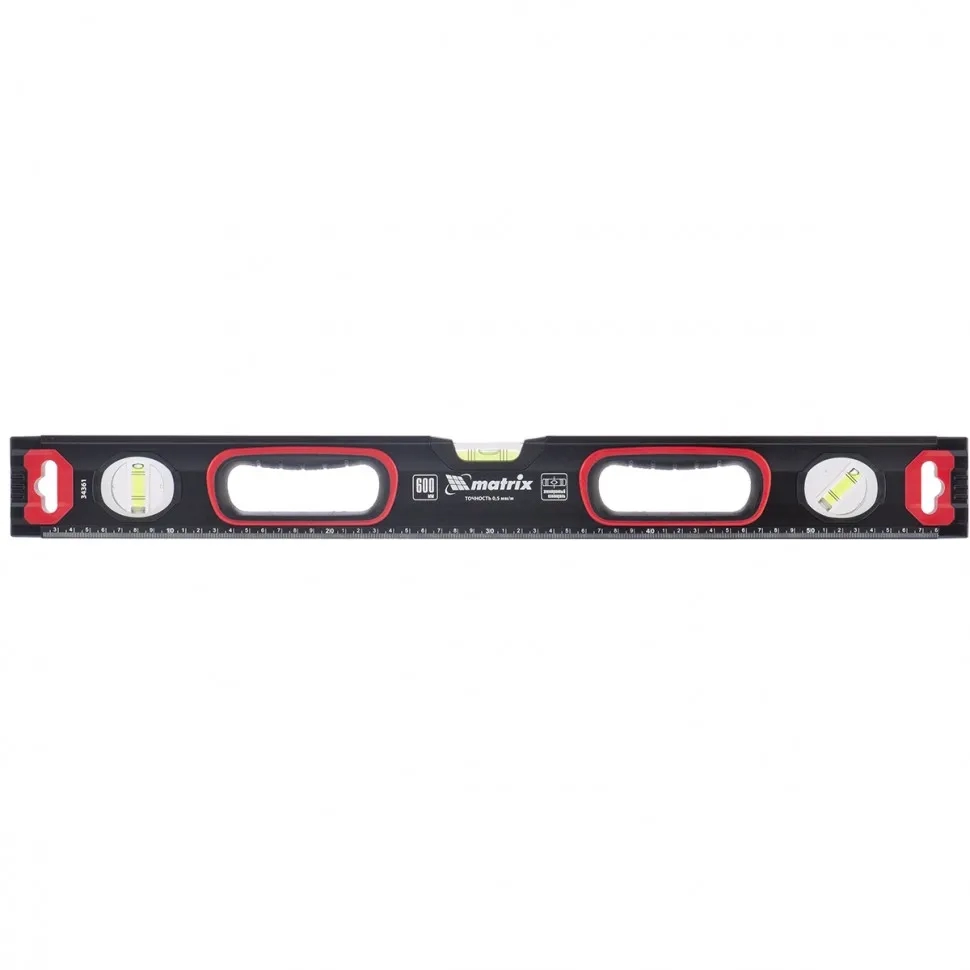 Уровень алюминиевый усиленный фрезерованный 3 глазка 2комп.рук. 1200 мм Matrix