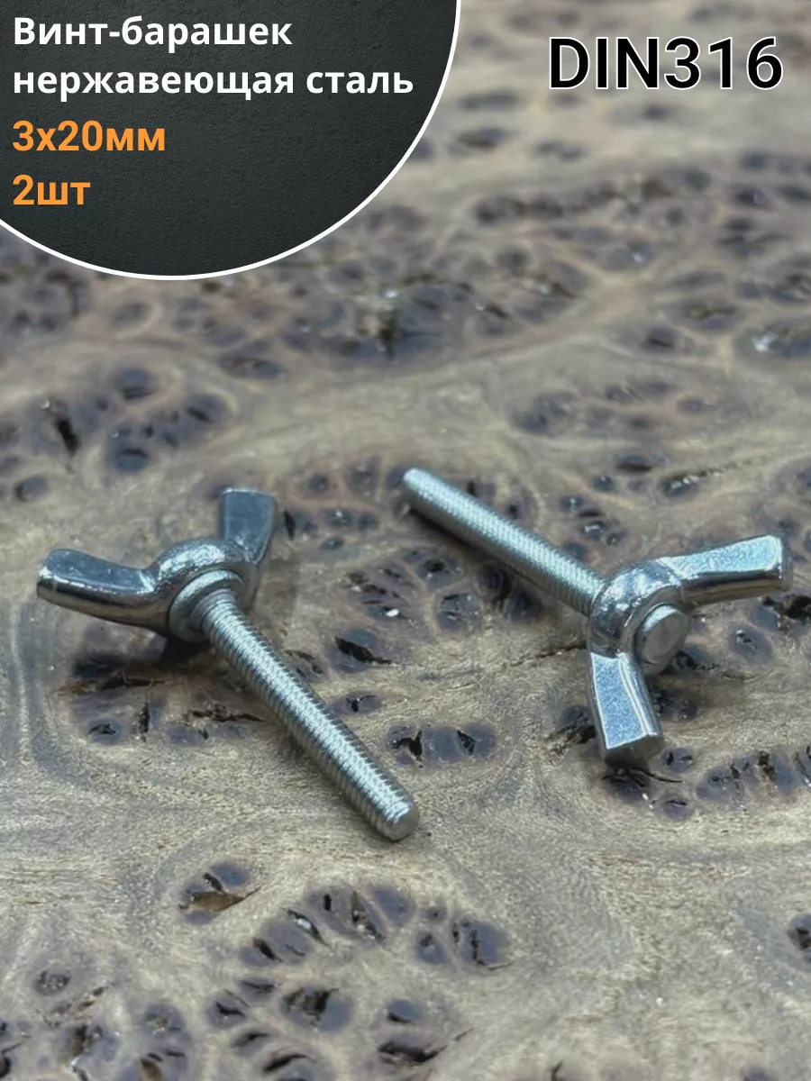 Винт-барашек М3х20 мм , нержавеющая сталь DIN 316 (2 шт.)