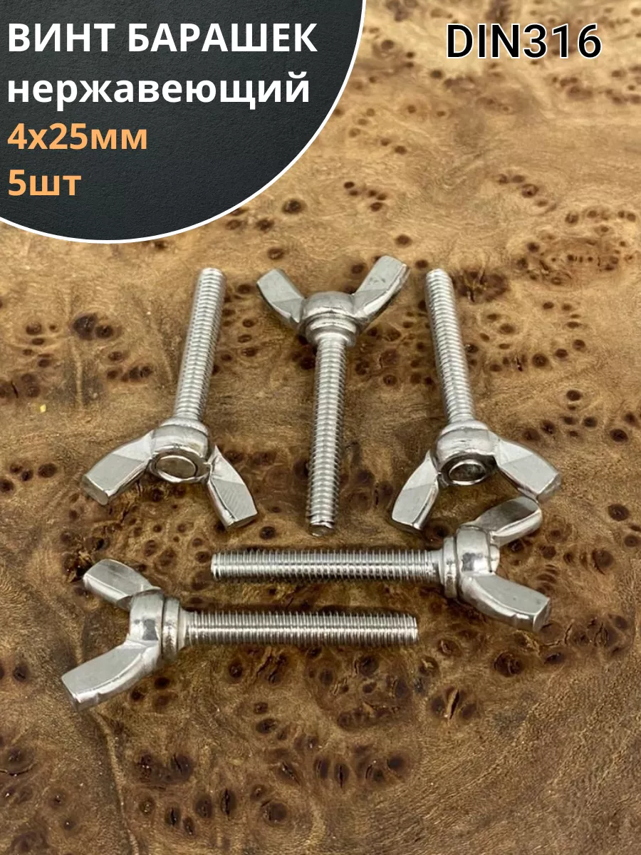| Винт-барашек М4х25 мм , нержавеющая сталь DIN 316 (2 шт.) | вб425 | 1 шт. |