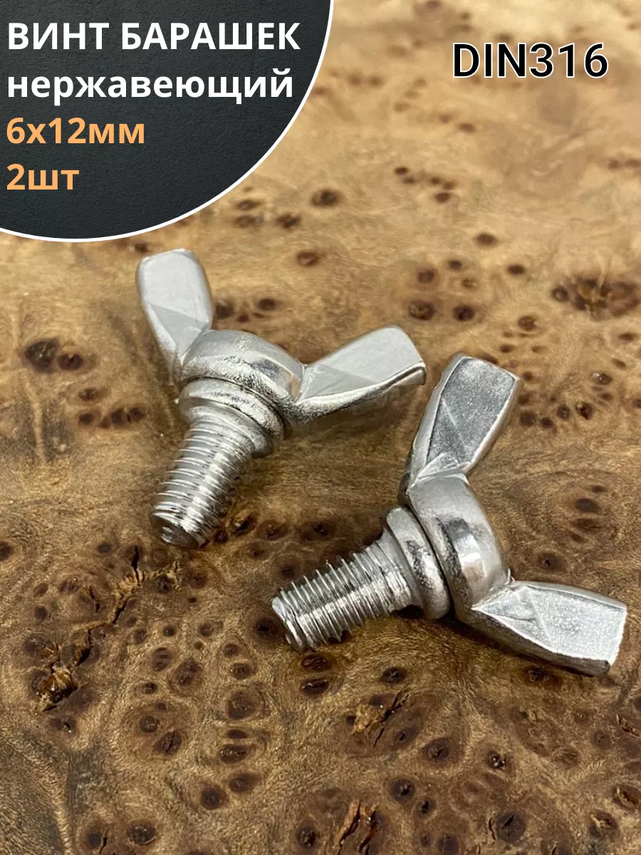 | Винт-барашек М6х12 мм , нержавеющая сталь DIN 316 (5 шт.) | вб612ф5 | 1 шт. |