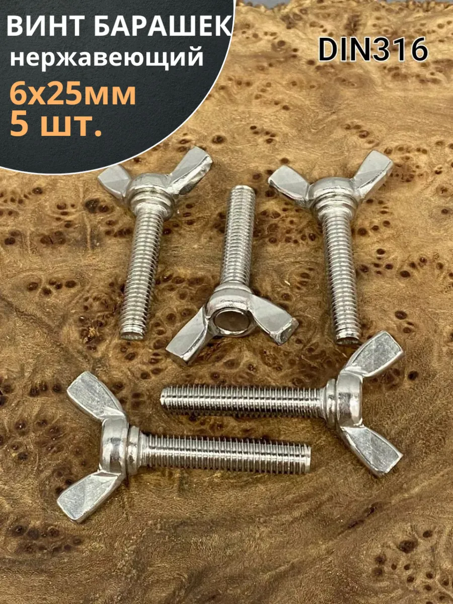| Винт-барашек М6х25 мм ,нержавеющая сталь DIN 316 (2 шт.) | вб625 | 1 шт. |