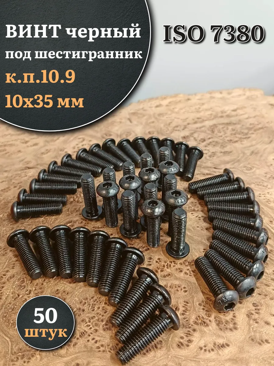 Винт чёрный М10х35 ISO 7380 под шестигранник к.п.10.9, 50 шт.