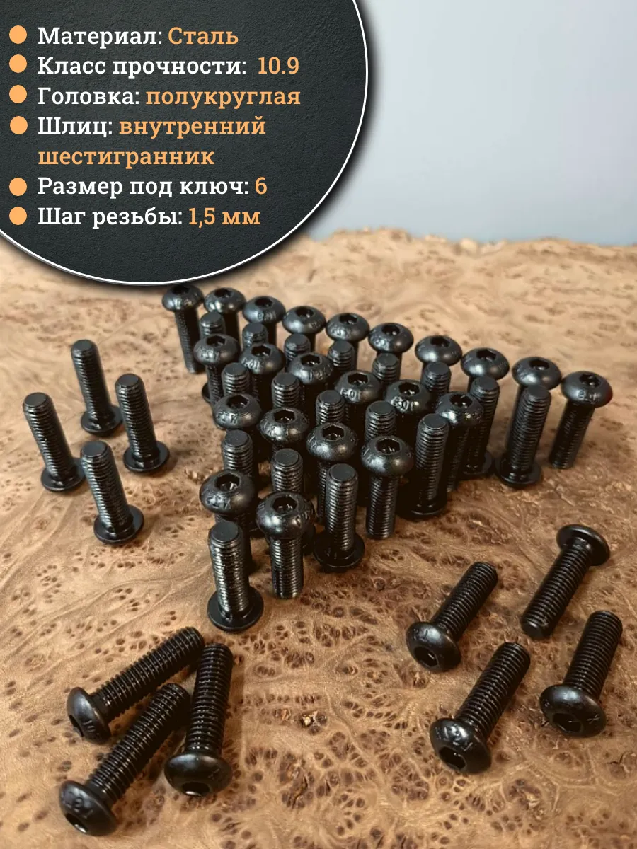 Винт чёрный М10х40 ISO 7380 под шестигранник к.п.10.9, 20 шт.