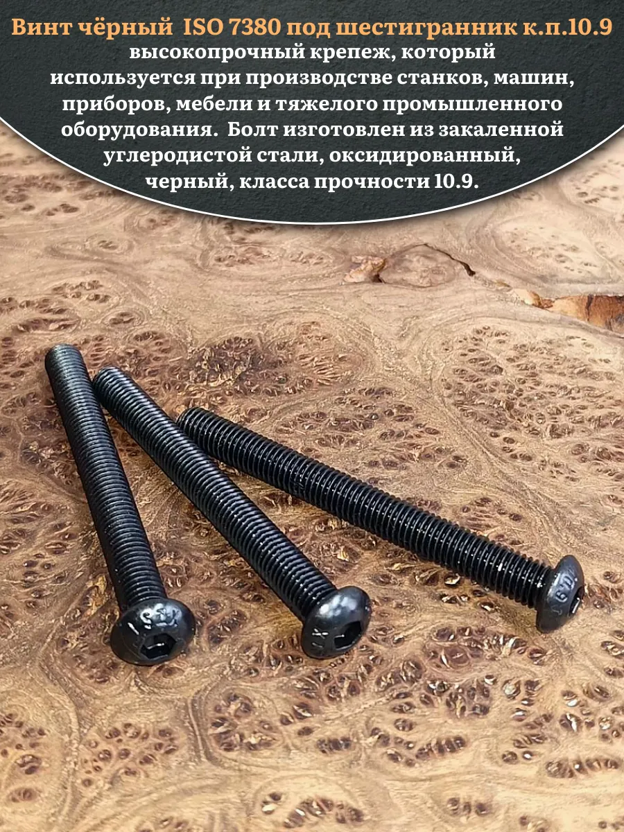 | Винт чёрный М12х100 ISO 7380 под шестигранник к.п.10.9, 10 шт. | 00-00003406ф10 | 1 шт. |