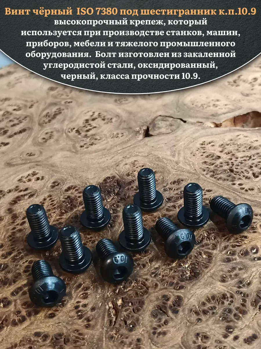Винт чёрный М12х20 ISO 7380 под шестигранник к.п.10.9, 10 шт.