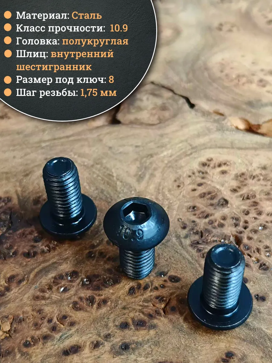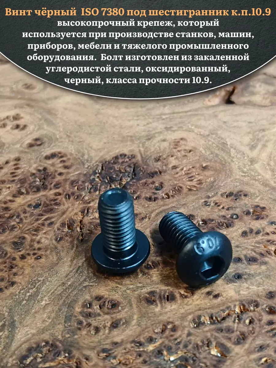 | Винт чёрный М12х20 ISO 7380 под шестигранник к.п.10.9, 10 шт. | 00-00004452ф10 | 1 шт. |