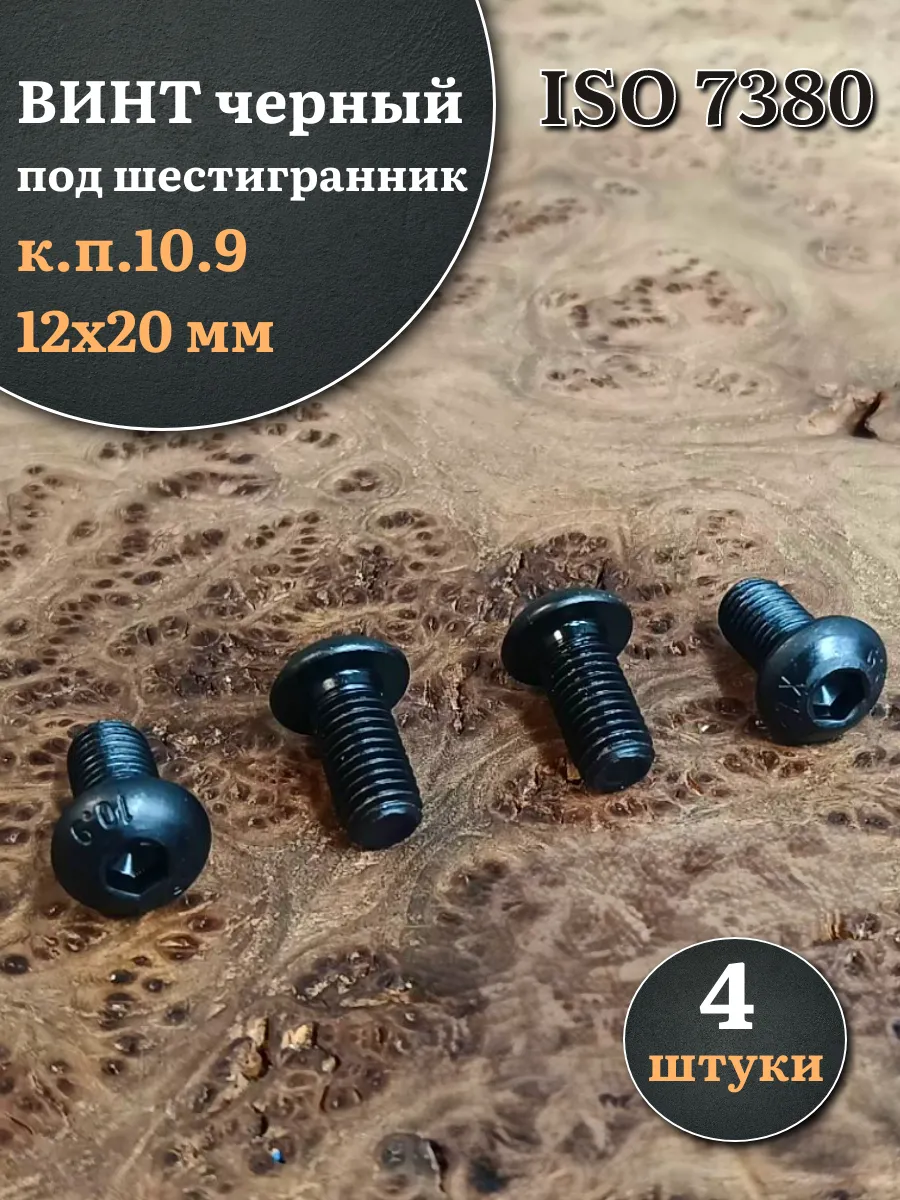 Винт чёрный М12х20 ISO 7380 под шестигранник к.п.10.9, 4 шт.
