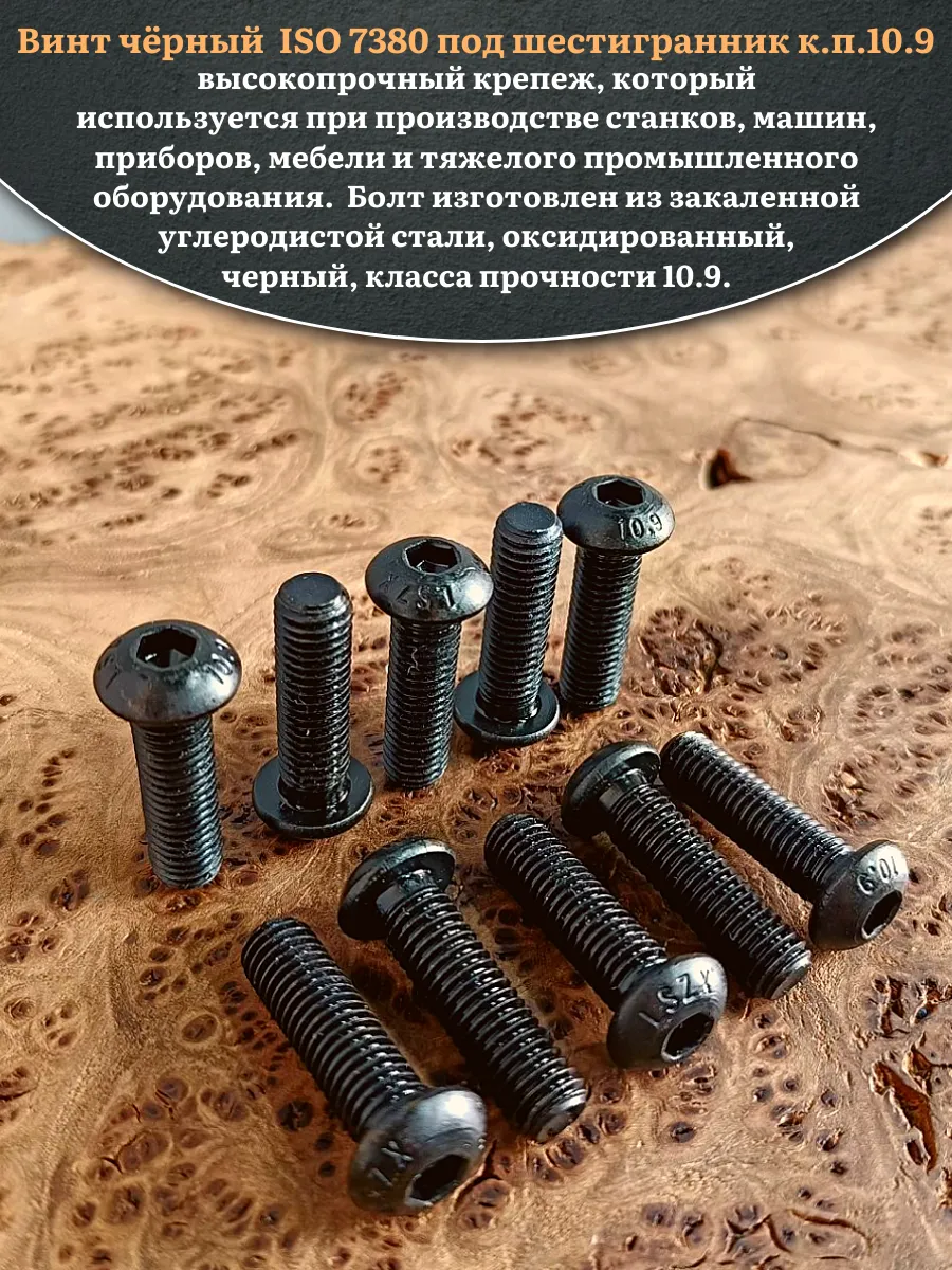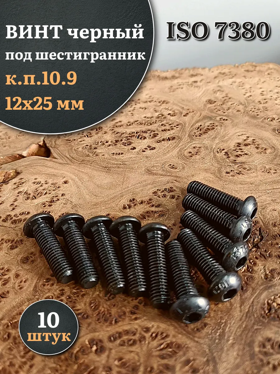 Винт чёрный М12х25 ISO 7380 под шестигранник к.п.10.9, 10 шт.
