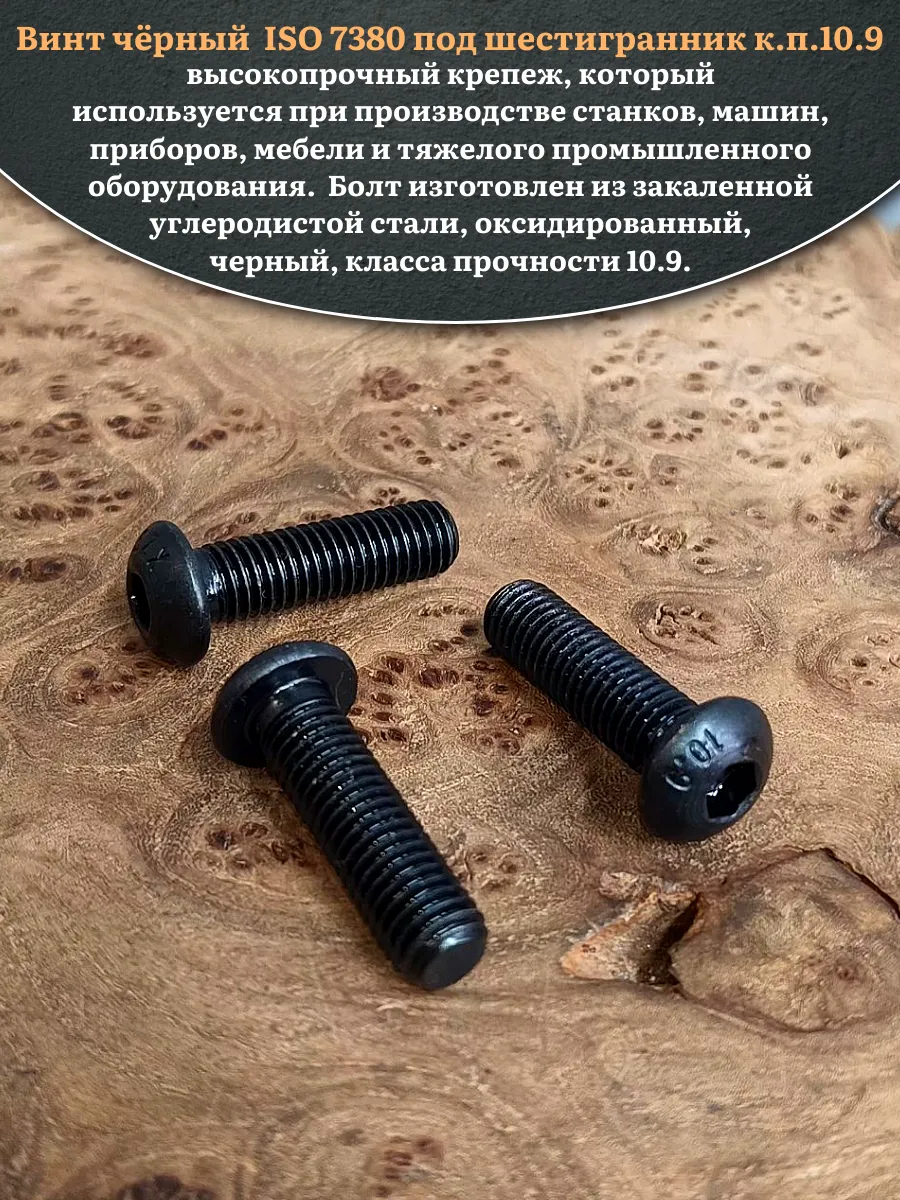 | Винт чёрный М12х25 ISO 7380 под шестигранник к.п.10.9, 10 шт. | 00-00001563ф10 | 1 шт. |