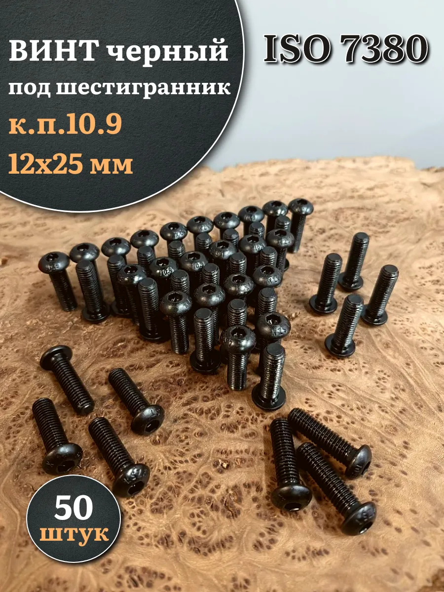 Винт чёрный М12х25 ISO 7380 под шестигранник к.п.10.9, 50 шт.