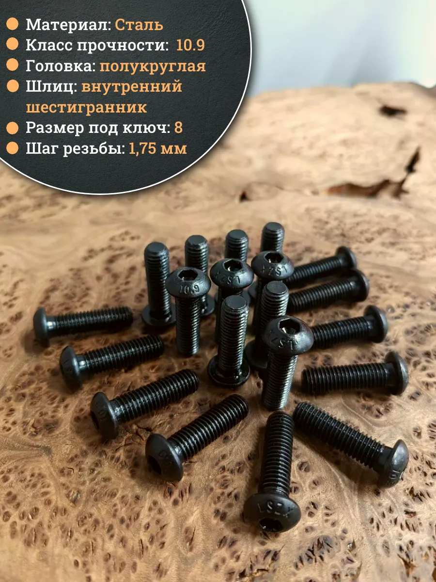 | Винт чёрный М12х25 ISO 7380 под шестигранник к.п.10.9, 10 шт. | 00-00001563ф10 | 1 шт. |