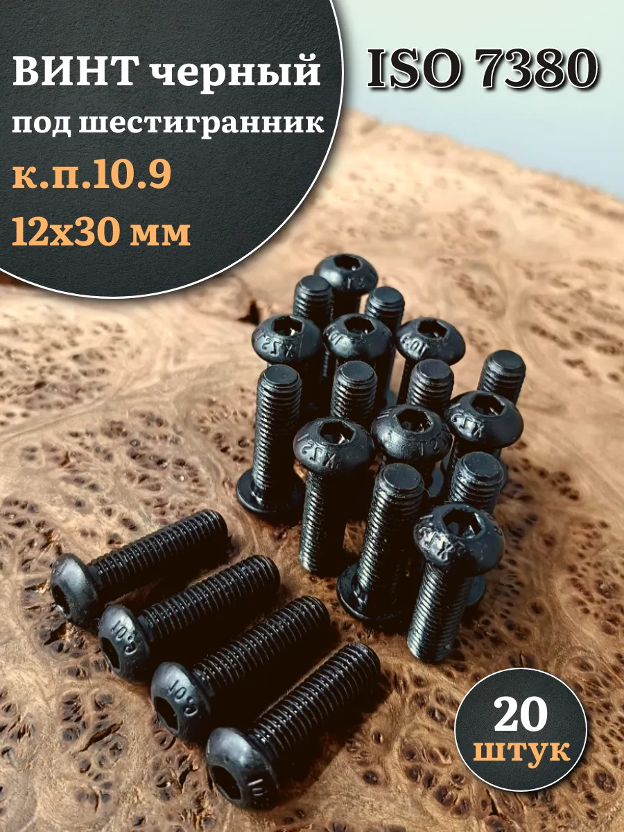 Винт чёрный М12х30 ISO 7380 под шестигранник к.п.10.9, 20 шт.