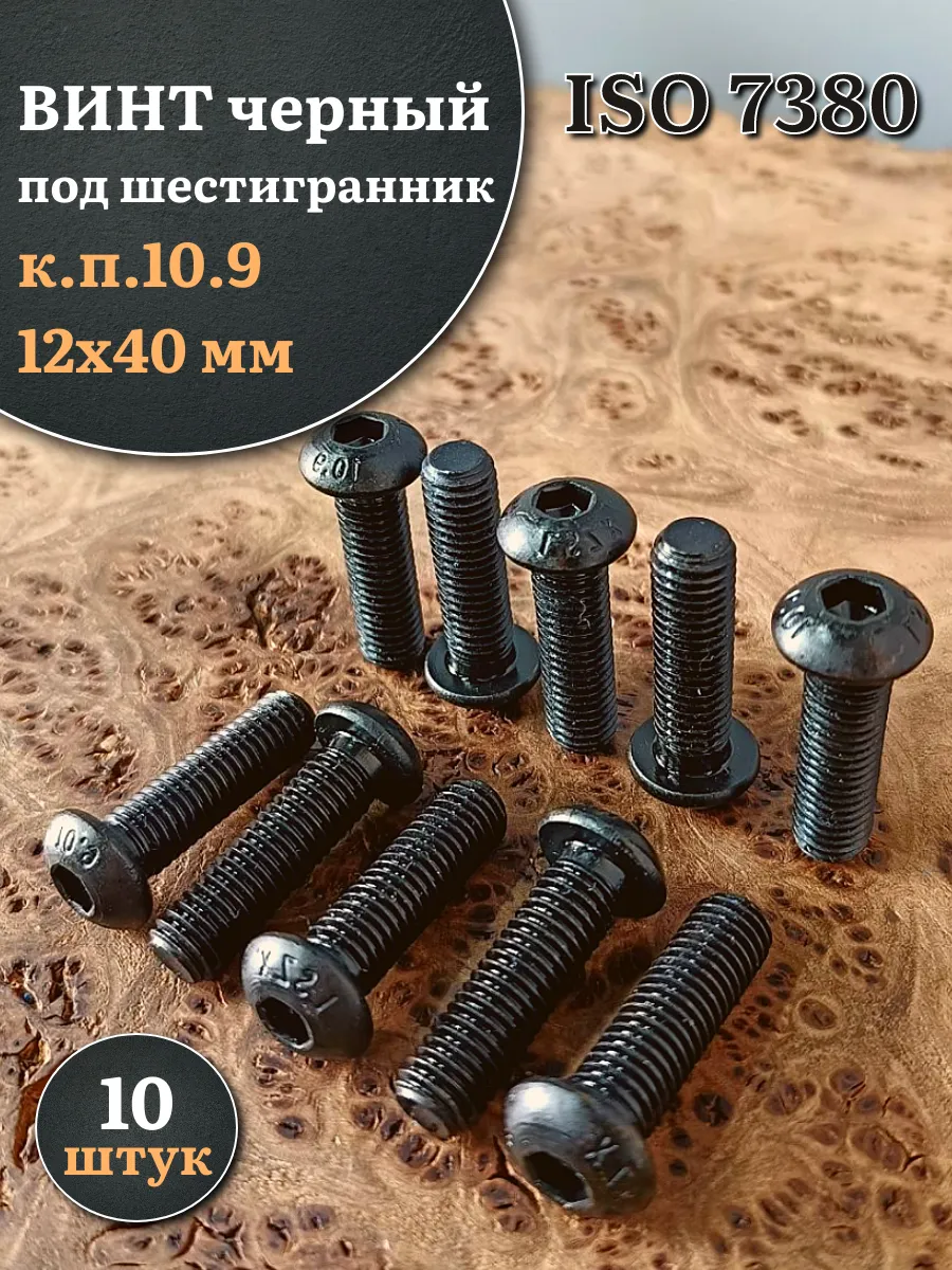 Винт чёрный М12х40 ISO 7380 под шестигранник к.п.10.9, 10 шт.