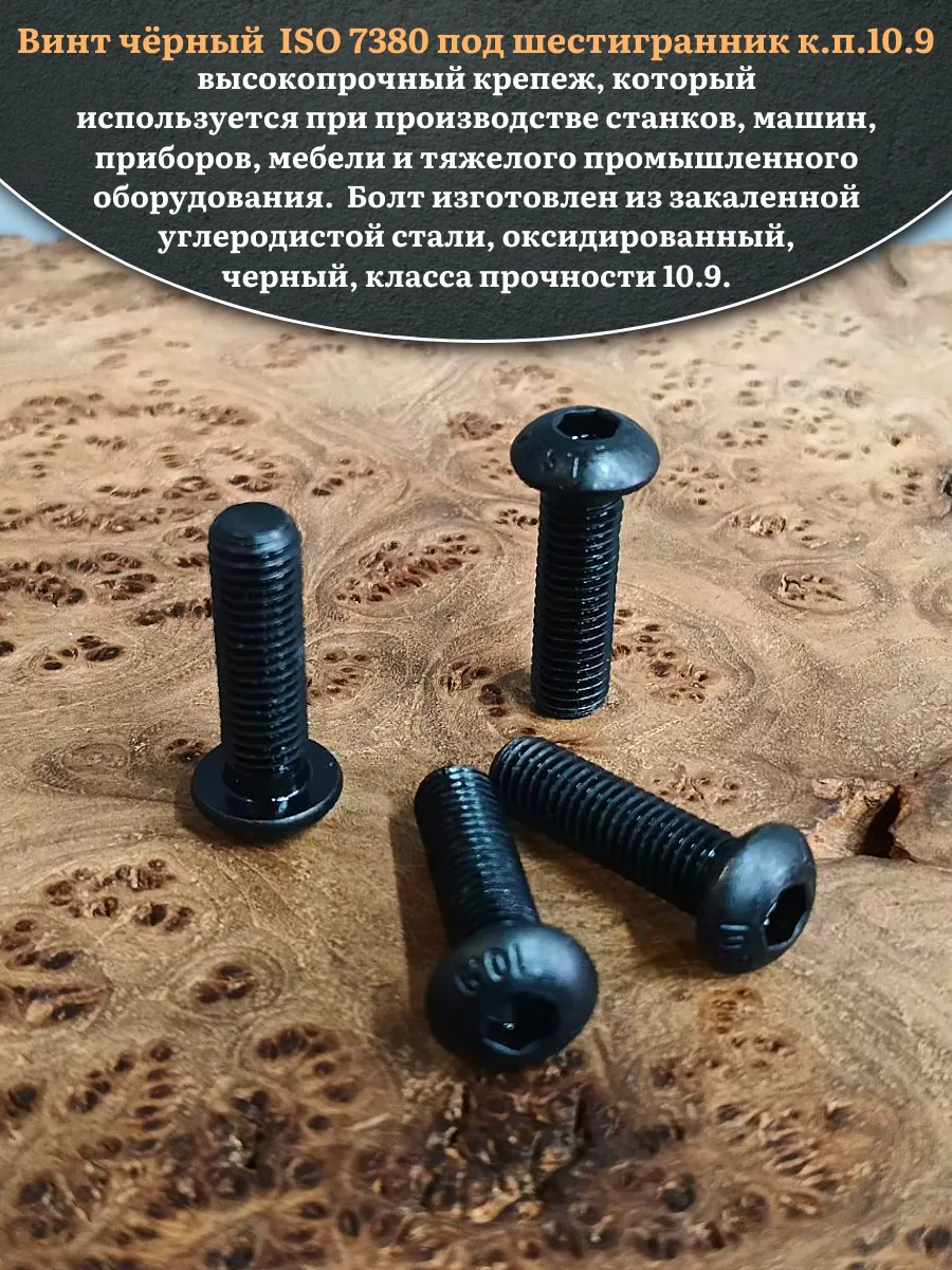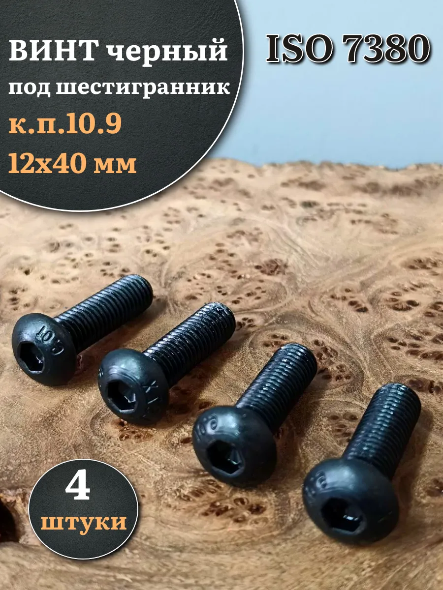 Винт чёрный М12х40 ISO 7380 под шестигранник к.п.10.9, 4 шт.