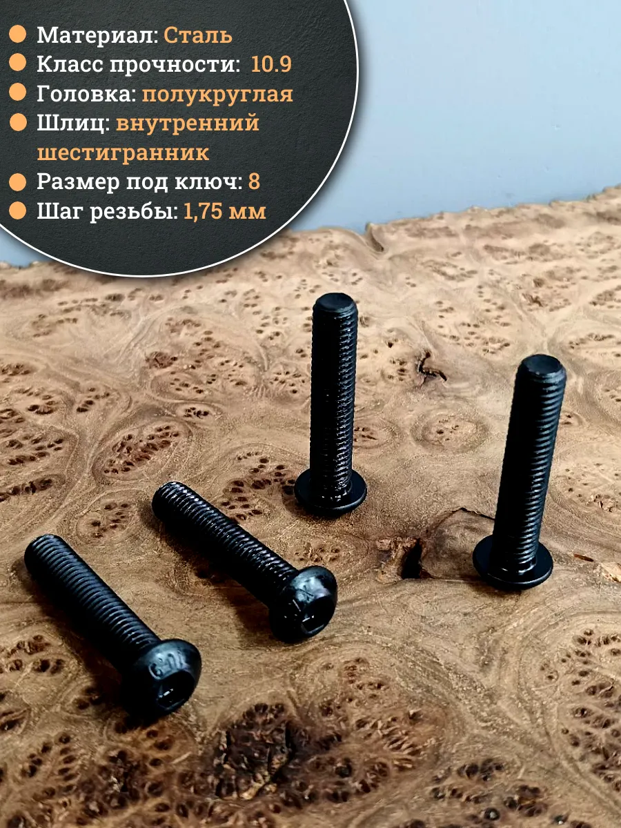 Винт чёрный М12х45 ISO 7380 под шестигранник к.п.10.9, 20 шт.