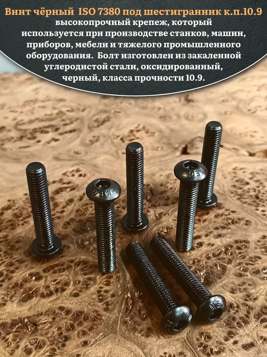 Винт чёрный М12х50 ISO 7380 под шестигранник к.п.10.9, 10 шт.