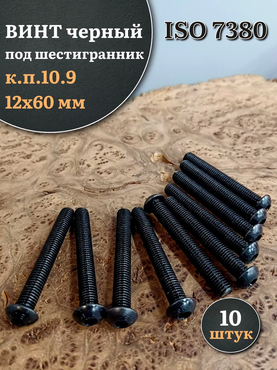 Винт чёрный М12х60 ISO 7380 под шестигранник к.п.10.9, 10 шт.