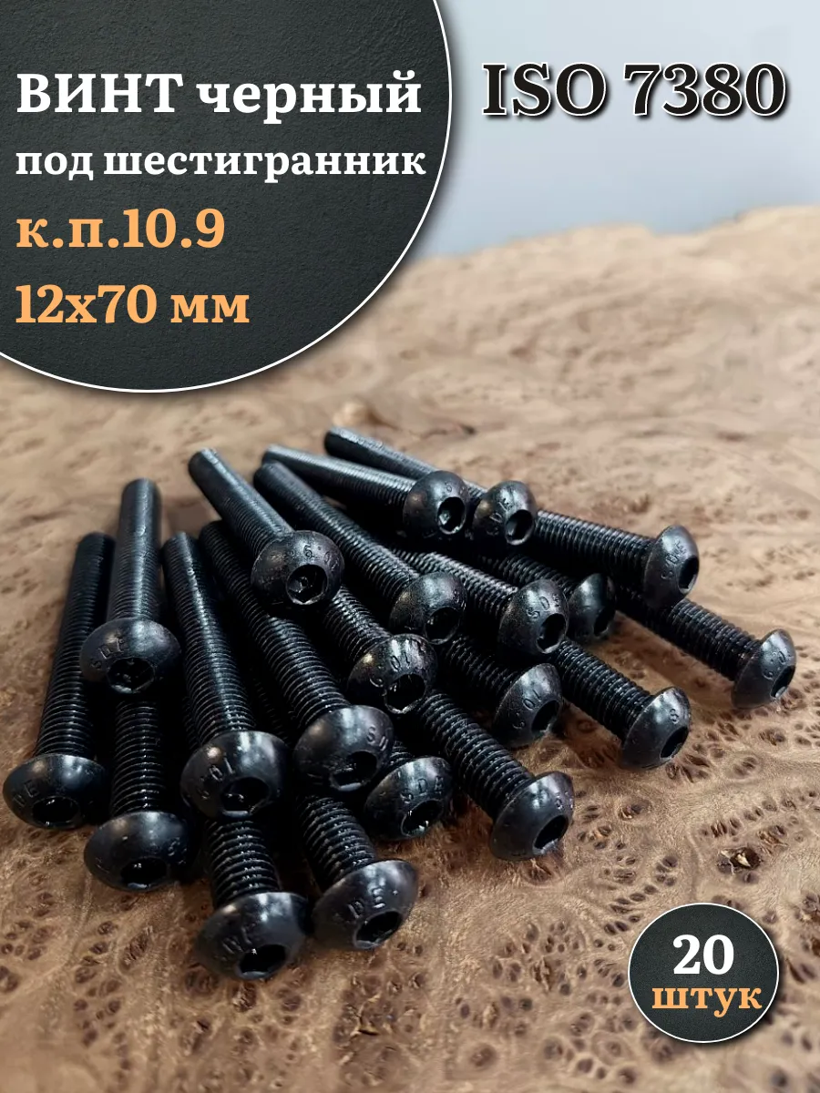 Винт чёрный М12х70 ISO 7380 под шестигранник к.п.10.9, 20 шт.