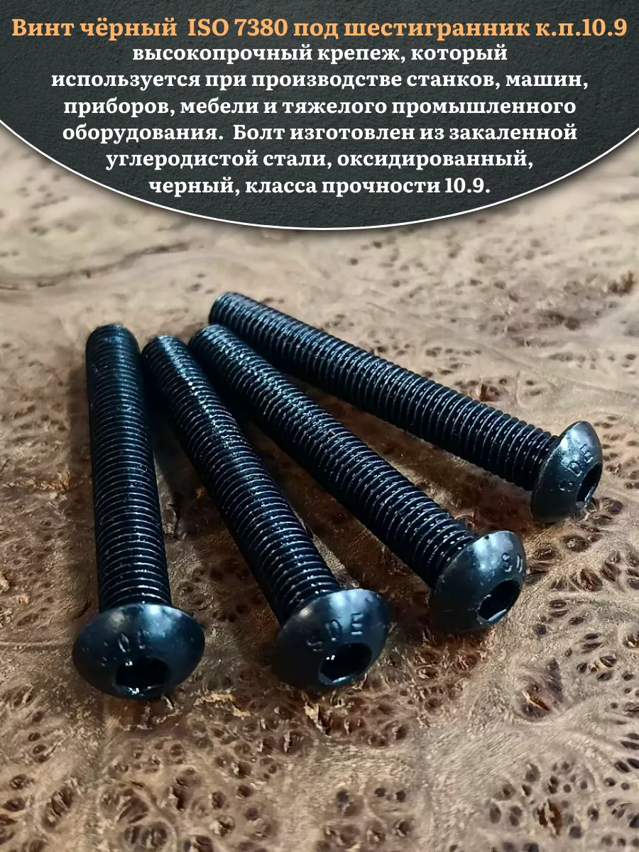 | Винт чёрный М12х70 ISO 7380 под шестигранник к.п.10.9, 10 шт. | 00-00004817ф10 | 1 шт. |
