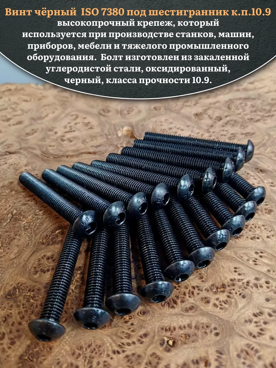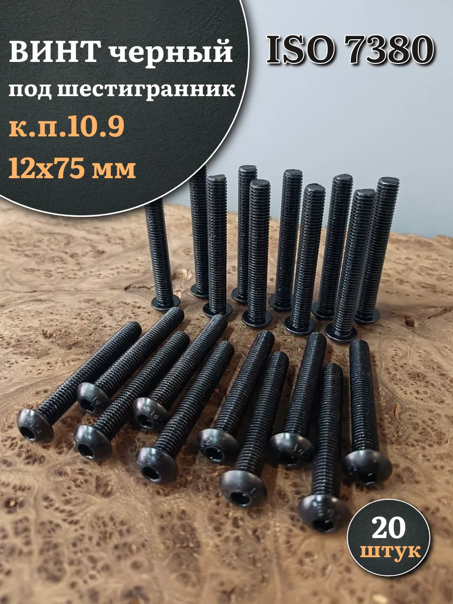 Винт чёрный М12х75 ISO 7380 под шестигранник к.п.10.9, 20 шт.