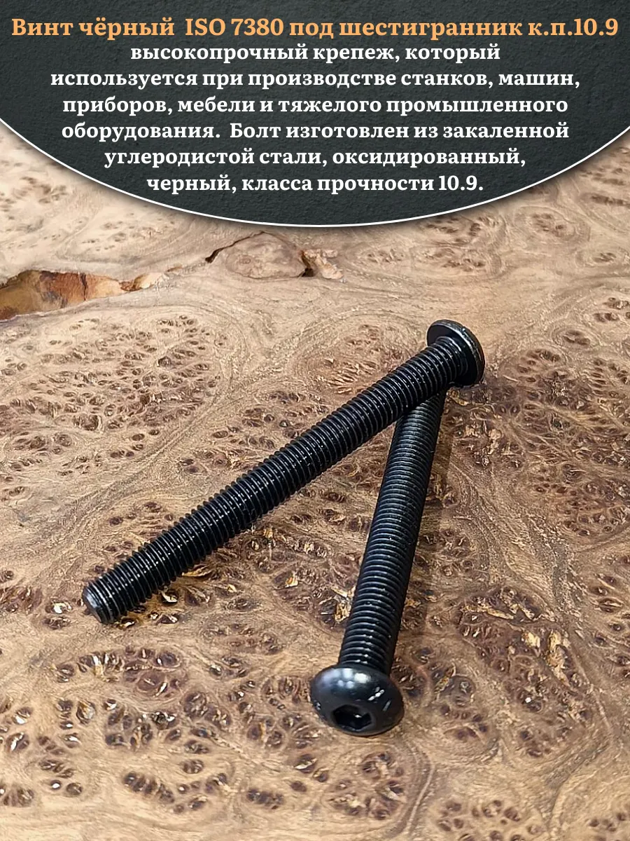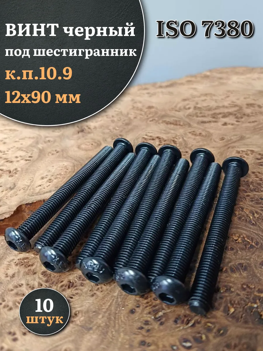 Винт чёрный М12х90 ISO 7380 под шестигранник к.п.10.9, 10 шт.