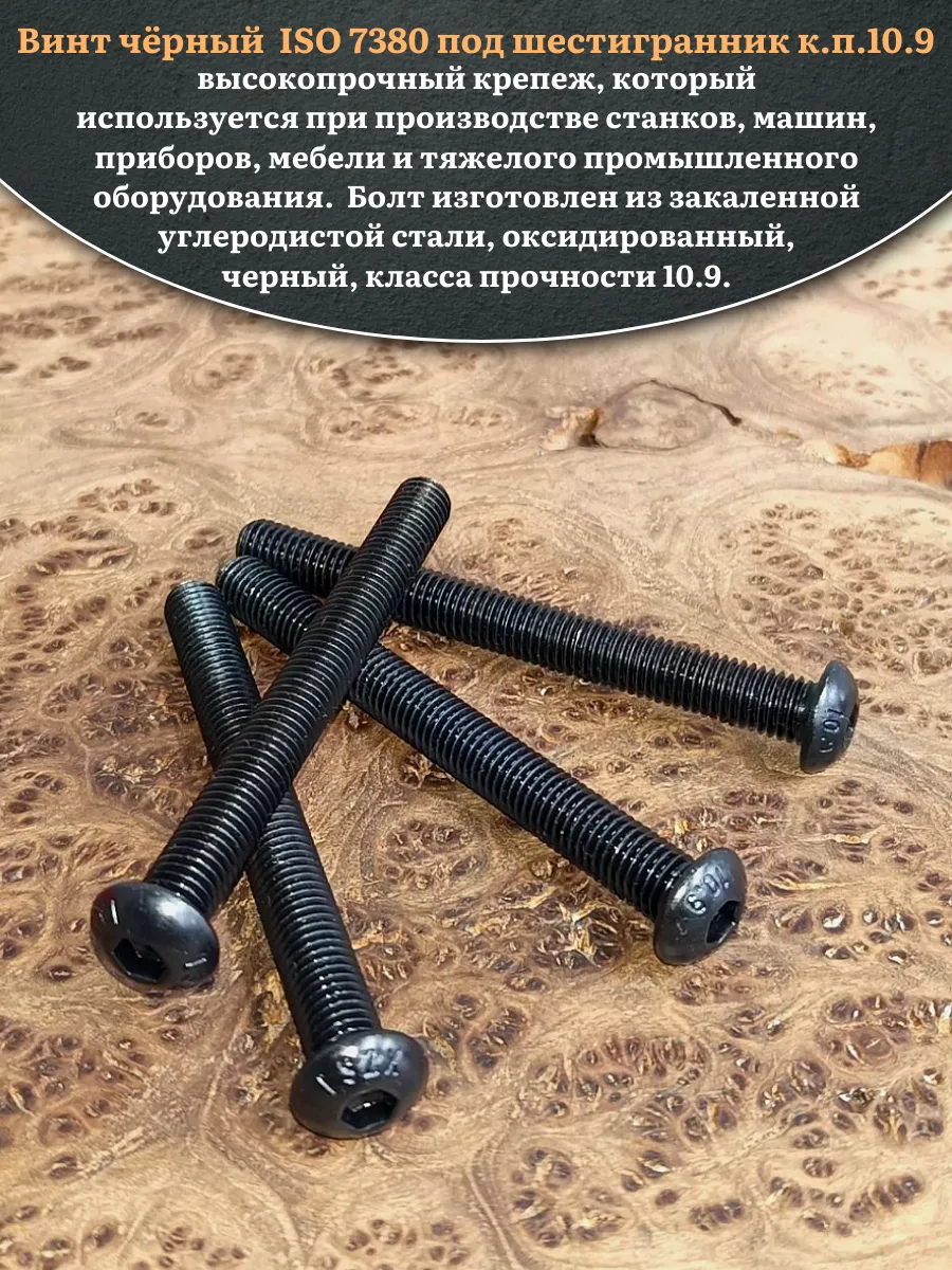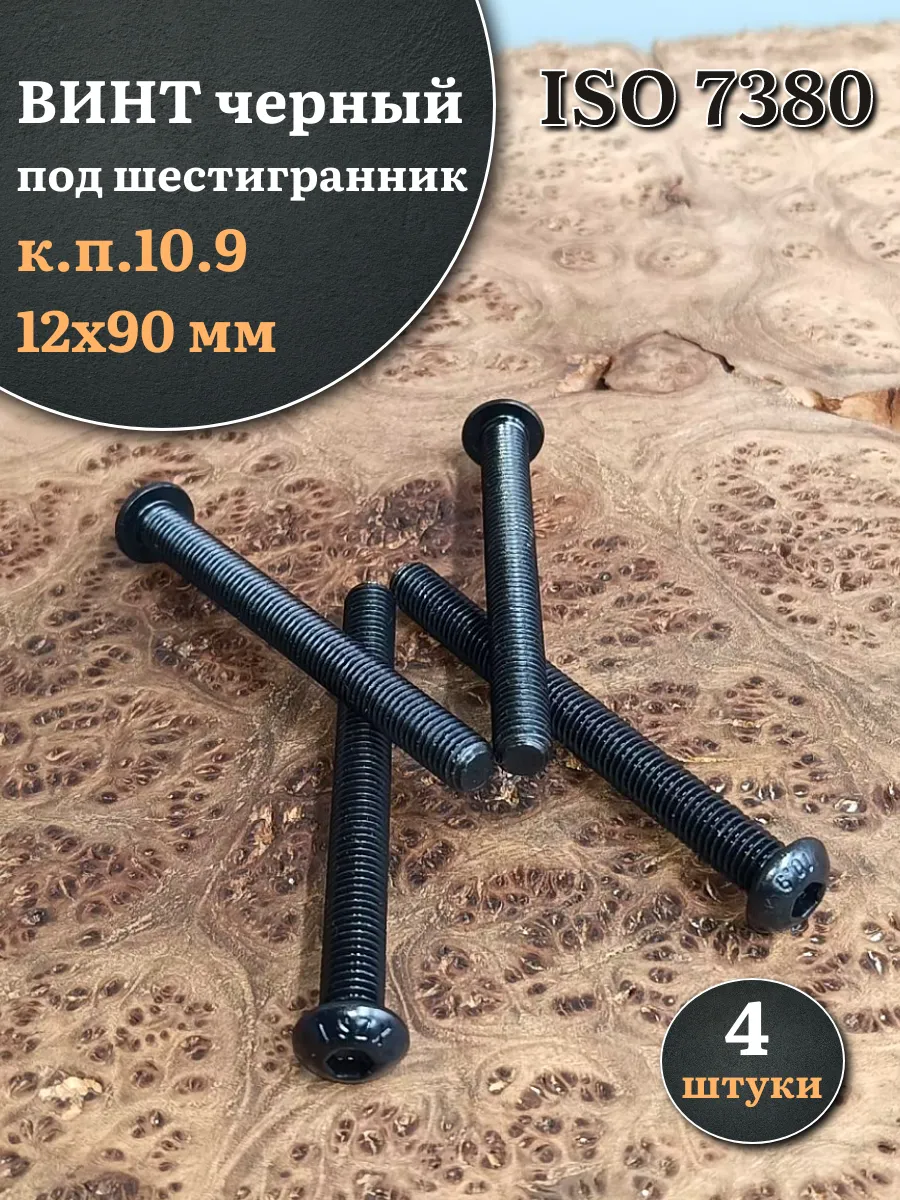 Винт чёрный М12х90 ISO 7380 под шестигранник к.п.10.9, 4 шт.