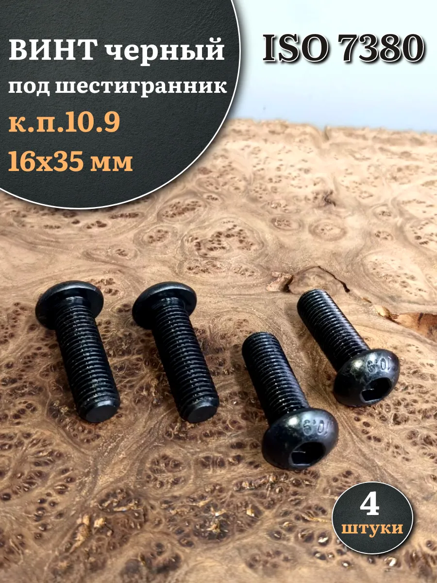 Винт чёрный М16х35 ISO 7380 под шестигранник к.п.10.9, 4 шт.