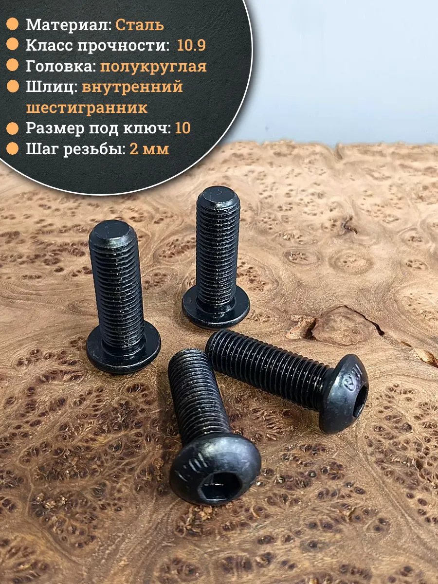 Винт чёрный М16х40 ISO 7380 под шестигранник к.п.10.9, 4 шт.