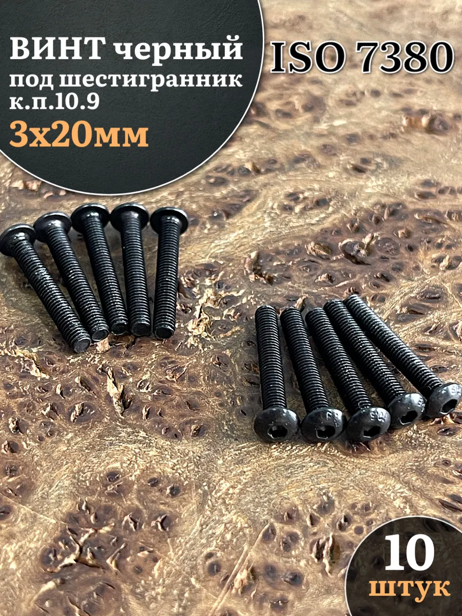 | Винт чёрный М3х20 ISO 7380 под шестигранник к.п.10.9, 20 шт. | в3201097380ф20 | 1 шт. |