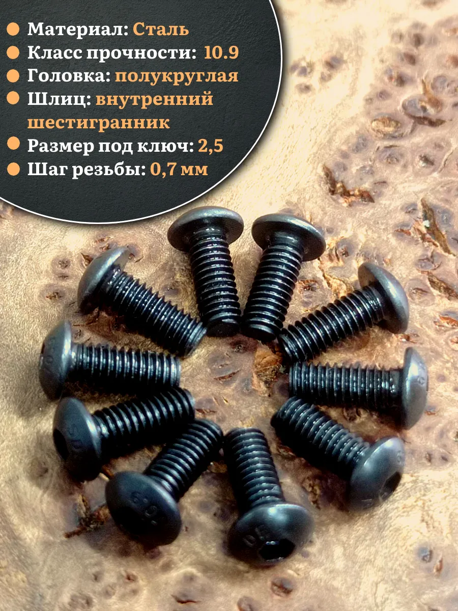| Винт чёрный М4х10 ISO 7380 под шестигранник к.п.10.9, 20 шт. | 00-00004435ф20 | 1 шт. |