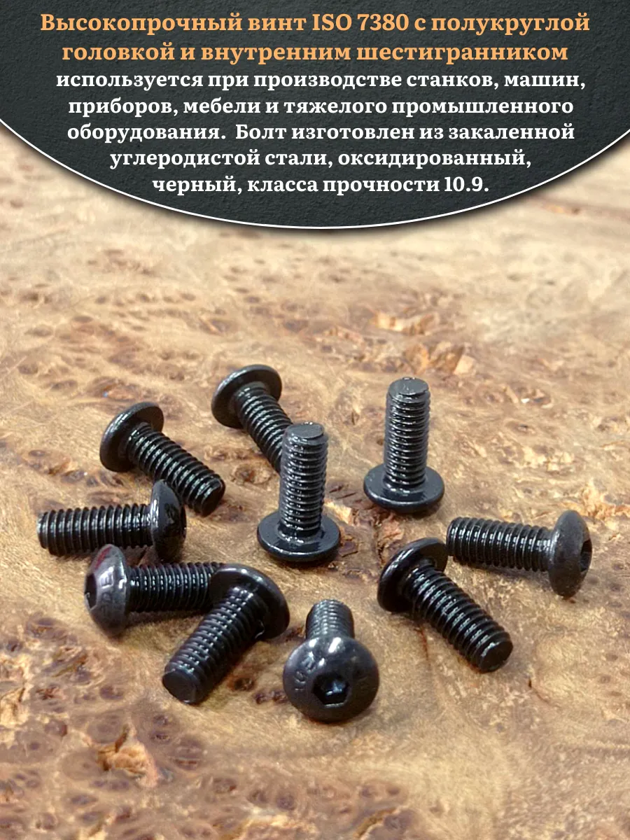 Винт чёрный М4х10 ISO 7380 под шестигранник к.п.10.9, 10 шт.