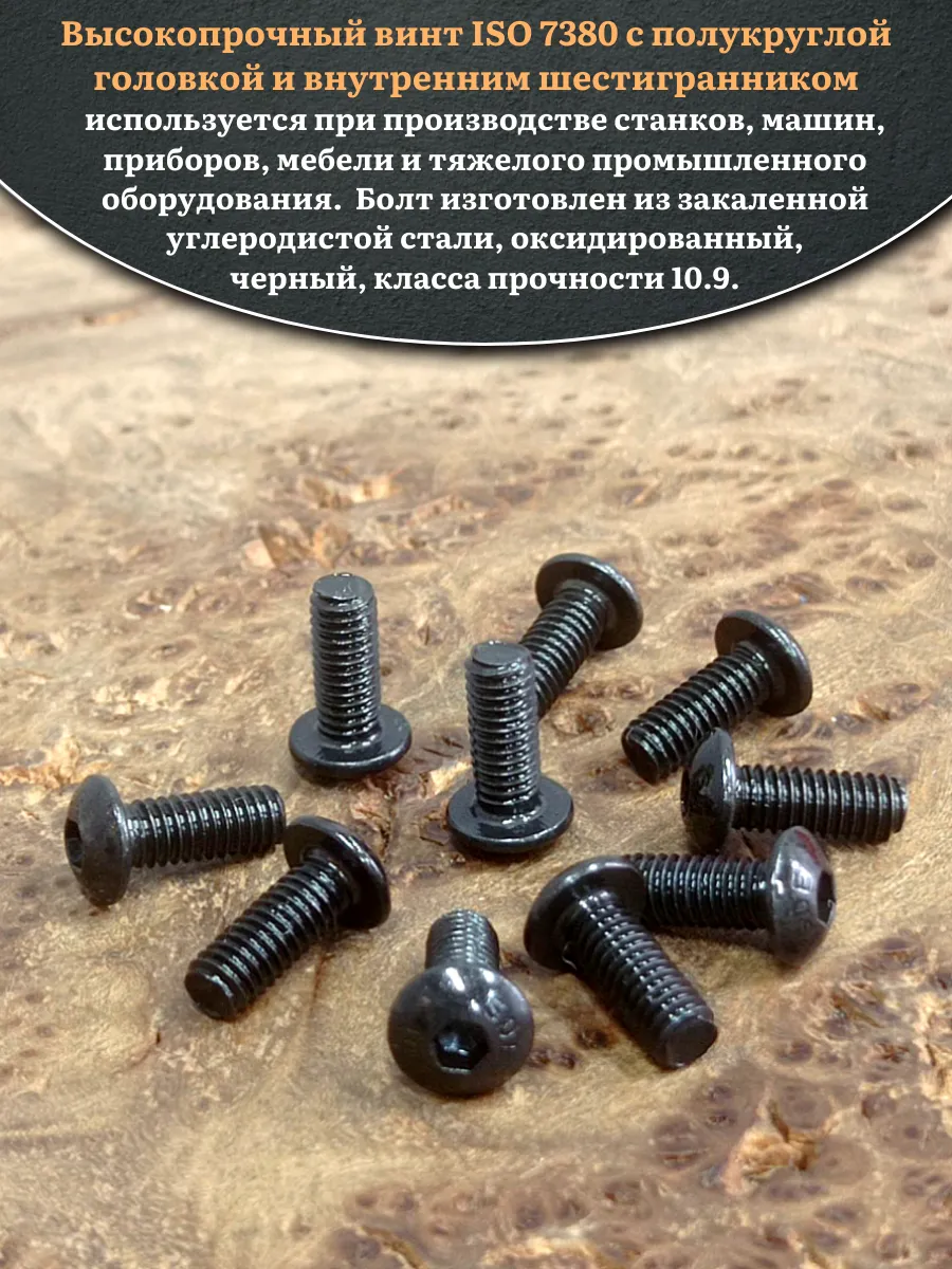Винт чёрный М4х10 ISO 7380 под шестигранник к.п.10.9, 50 шт.