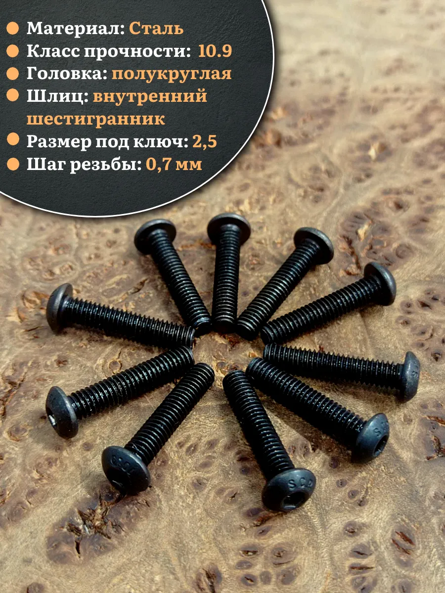 Винт чёрный М4х14 ISO 7380 под шестигранник к.п.10.9, 10 шт.