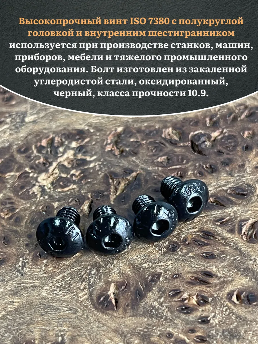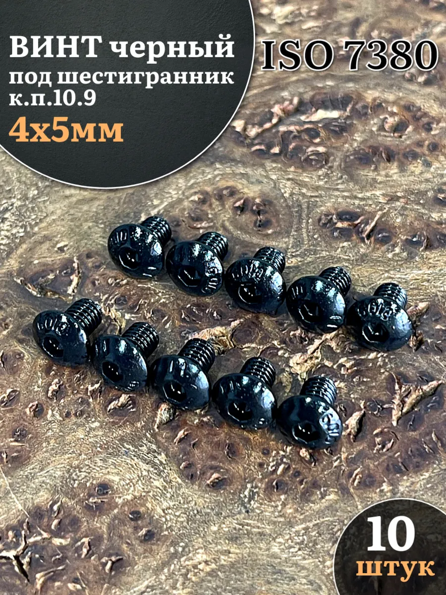 Винт чёрный М4х5 ISO 7380 под шестигранник к.п.10.9, 10 шт.