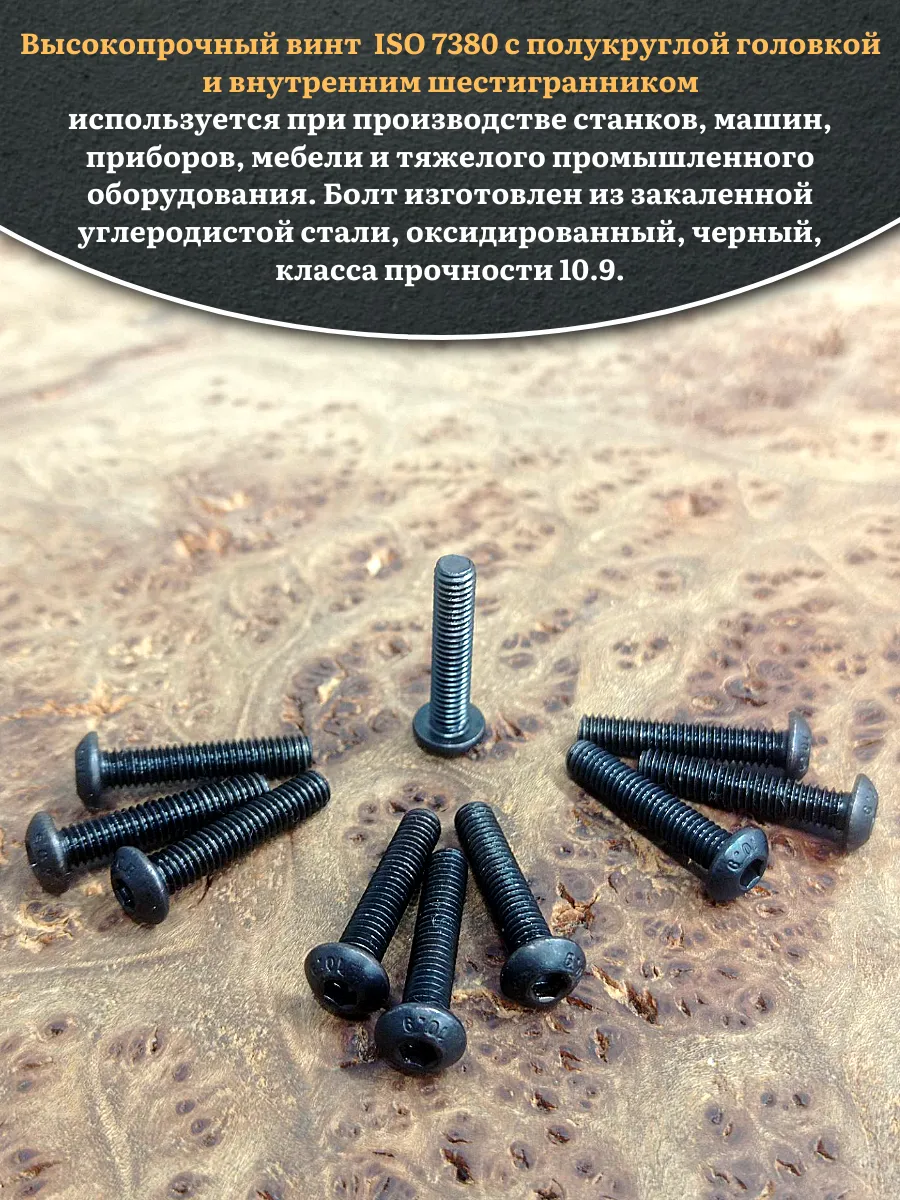 Винт чёрный М5х14 ISO 7380 под шестигранник к.п.10.9, 10 шт.