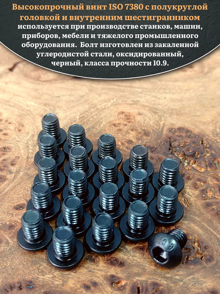 Винт чёрный М5х6 ISO 7380 под шестигранник к.п.10.9, 20 шт.