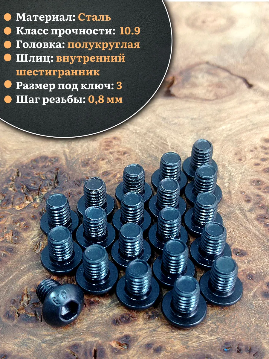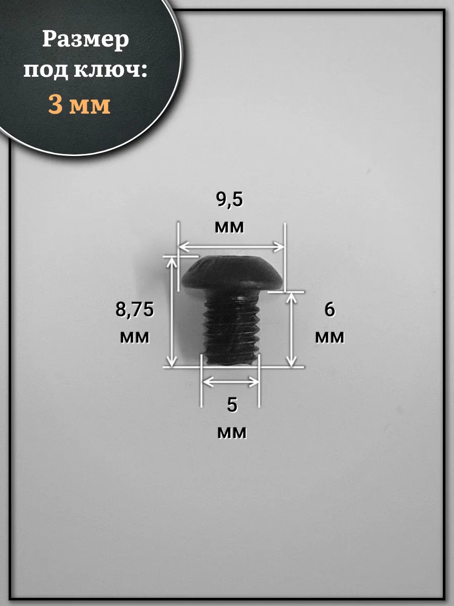 | Винт чёрный М5х6 ISO 7380 под шестигранник к.п.10.9, 10 шт. | 00-00003823ф10 | 1 шт. |