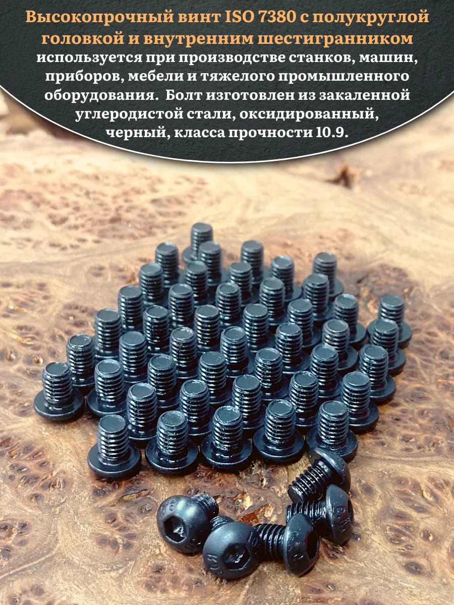 Винт чёрный М5х6 ISO 7380 под шестигранник к.п.10.9, 50 шт.