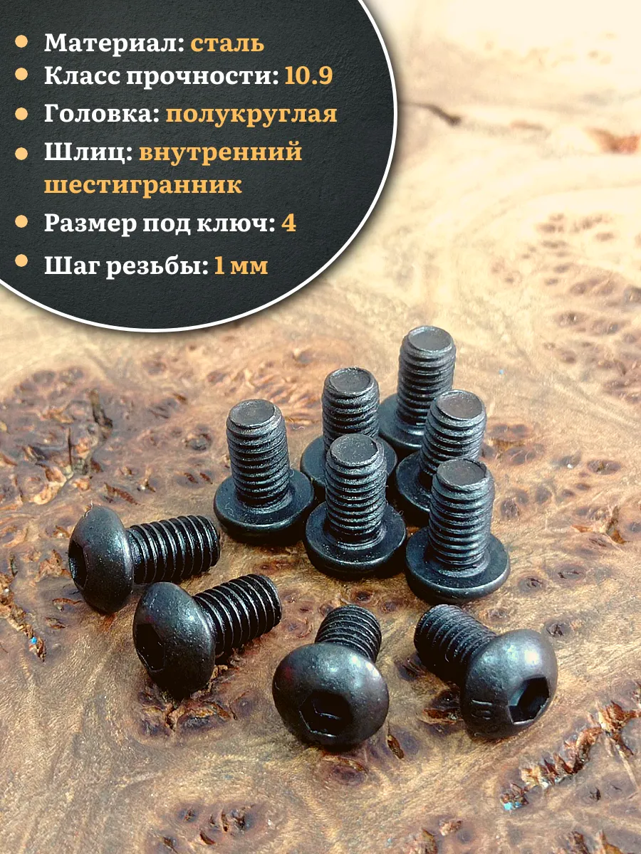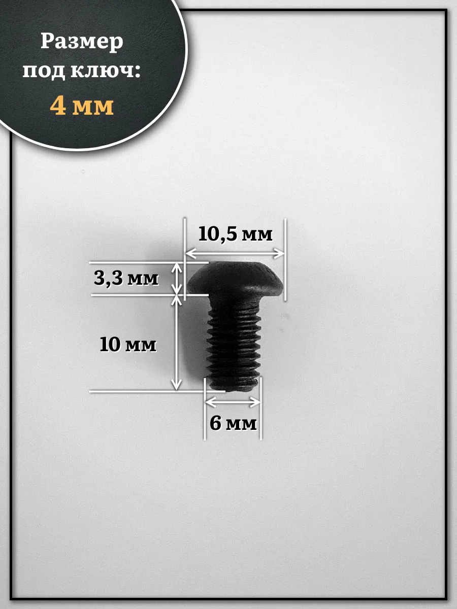 | Винт чёрный М6х10 ISO 7380 под шестигранник к.п.10.9, 20 шт. | 00-00002082ф20 | 1 шт. |