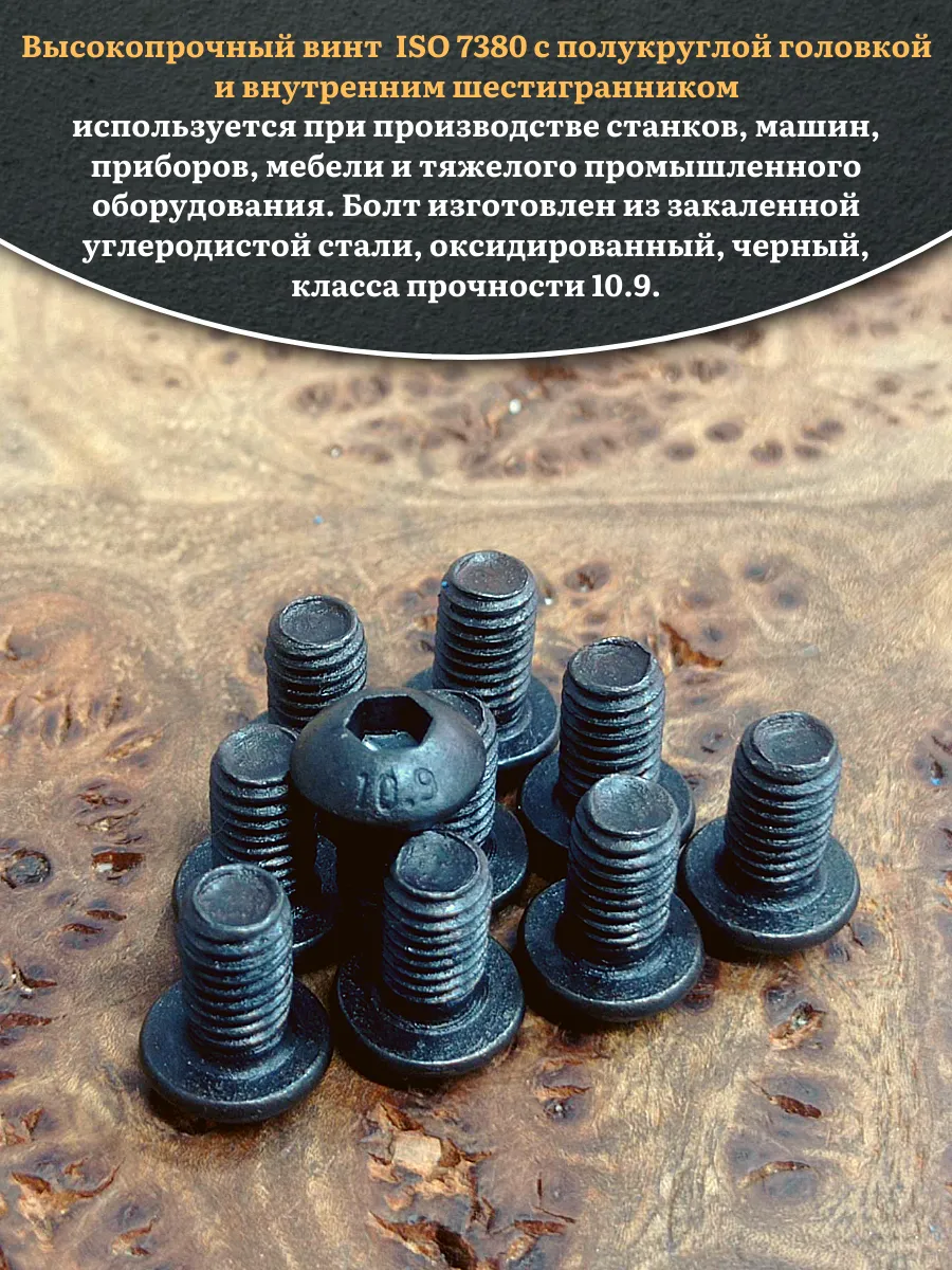Винт чёрный М6х10 ISO 7380 под шестигранник к.п.10.9, 10 шт.