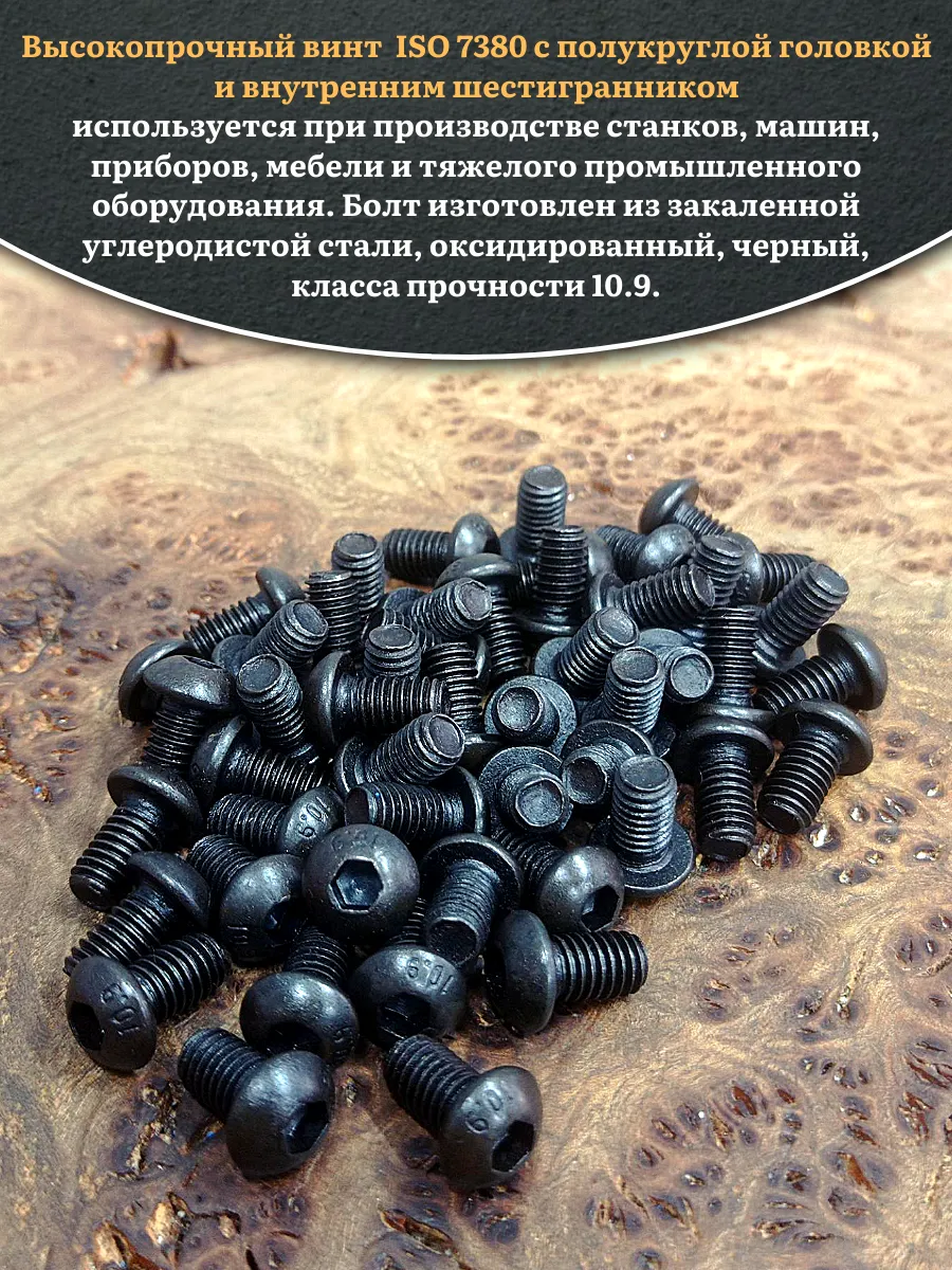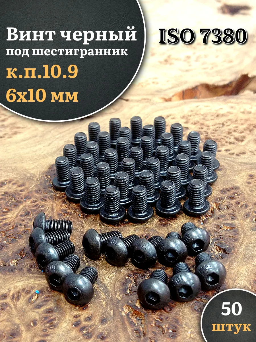 Винт чёрный М6х10 ISO 7380 под шестигранник к.п.10.9, 50 шт.