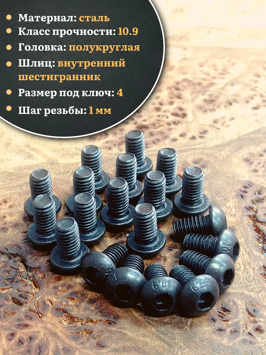 | Винт чёрный М6х10 ISO 7380 под шестигранник к.п.10.9, 20 шт. | 00-00002082ф20 | 1 шт. |