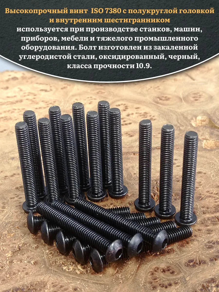Винт чёрный М6х50 ISO 7380 под шестигранник к.п.10.9, 20 шт.